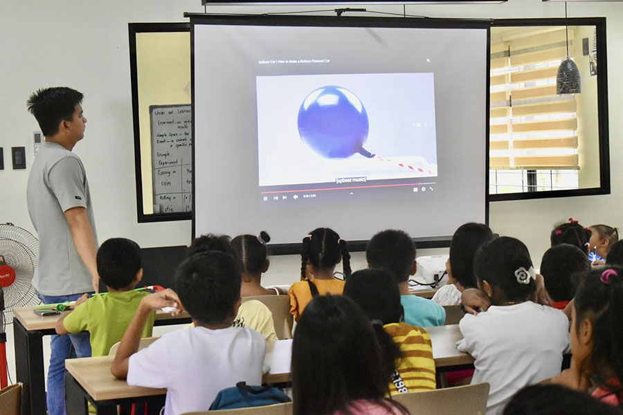 Het eerste experiment was de Balloon Powered Car. De leerlingen maakten een autootje dat vooruitging door de kracht van lucht uit een ballon. Hierbij leerden ze spelenderwijs over beweging en energie.
